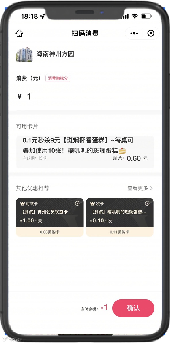 ②用户使用灵活方便,优化用户消费体验,提高活跃促进消费复购,用户使用充值卡消费时即可直接享受折扣优惠,如购买了时效卡,则在微信扫码支付时享受折扣优惠。