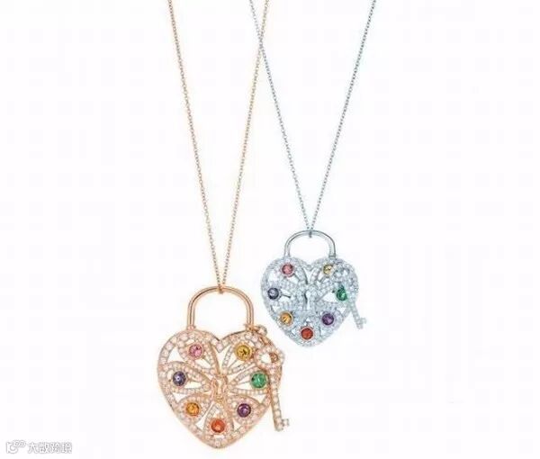 蒂芙尼(Tiffany&Co.)发布了Tiffany Locks系列配饰,将小巧精致的锁头形吊坠连接在一起,有了钥匙与锁匹配和“锁住爱情”的美好寓意。