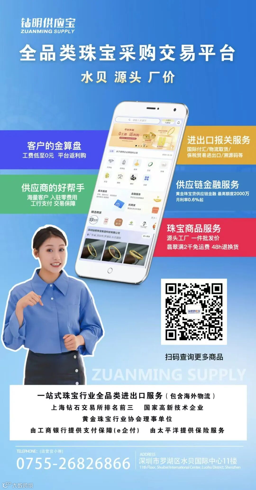 钻明供应宝集全品类商品采购一站式服务外,包含供应链金融,进出口报关,珠宝回收等系统性助力珠宝店增涨市场份额。
