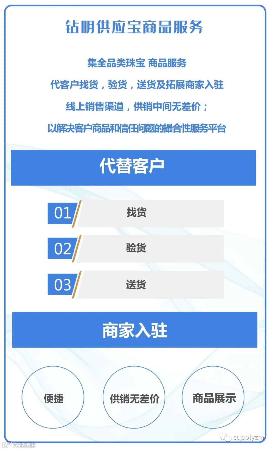 钻明供应宝是集全品类珠宝商品采购,融资金融及进出口报关等业务于一体的服务平台。