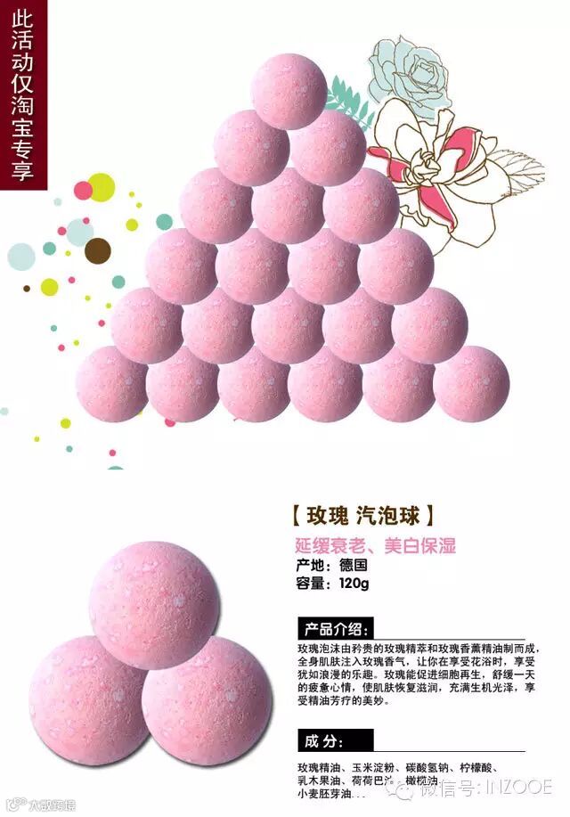 玫瑰精油汽泡球,专柜价49元/个,1元购