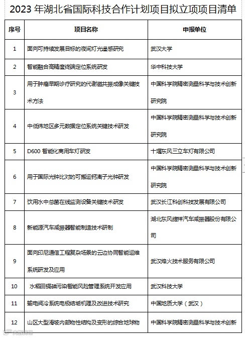 附 件:2023年湖北省国际科技合作计划项目拟立项项目清单