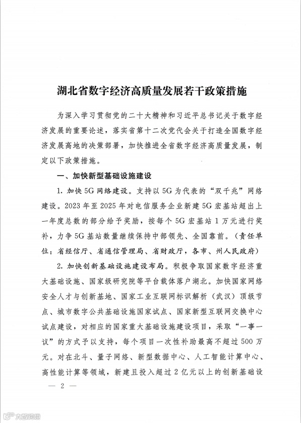 导读:省人民政府办公厅关于印发湖北省数字经济高质量发展若干政策措施的通知