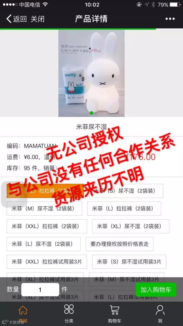 近期,公司收到众多客户投诉,多个微信昵称为“嫲嫲团”(公司名称:我和我的小伙伴网络科技公司)的人所销售的米菲纸尿裤,防伪标均受到不同程度的破坏,导致不能查询产品的真假。