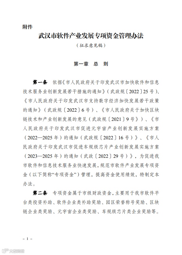 附件:武汉市软件产业发展专项资金管理办法(征求意见稿)