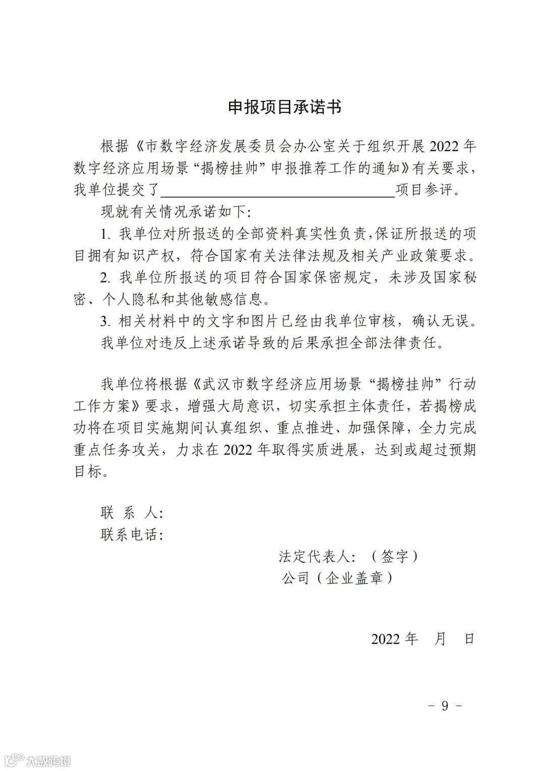 2.2022年武汉市数字经济应用场景“揭榜挂帅”申报材料