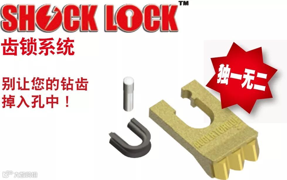 Augertorque瑞钻 Shock Lock™ 齿锁系统,让掉齿成为过去,适用Shock Lock™ 插销和橡胶嵌入独特的Shock Lock™ 齿托里,确保钻齿被安全地锁定以及冲击破断时受到保护。