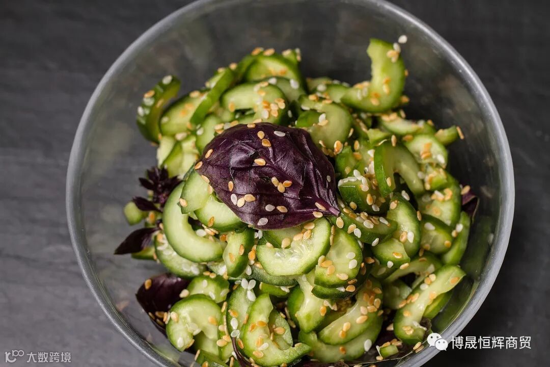 二、紫苏叶拌黄瓜,紫苏叶洗净,加盐杀一下,切碎。黄瓜洗净,去皮,切成片,能吃辣的可以放青辣椒切片,放入一小盆中,撒上精盐、味精、生抽、蚝油和适量白糖,淋上香油,上桌前拌匀,装入盘中,即可食用。