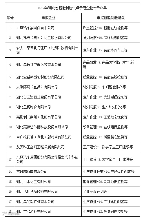 附件:2023年湖北省智能制造试点示范企业公示名单