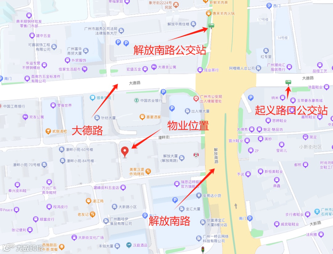 步行到海珠广场地铁站约10分钟;步行到解放南路公交站及起义路口公交站约5分钟。