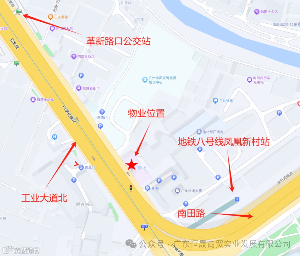 毗邻广州地铁八号线凤凰新村站,步行约3分钟;革新路口公交站,步行约6分钟。