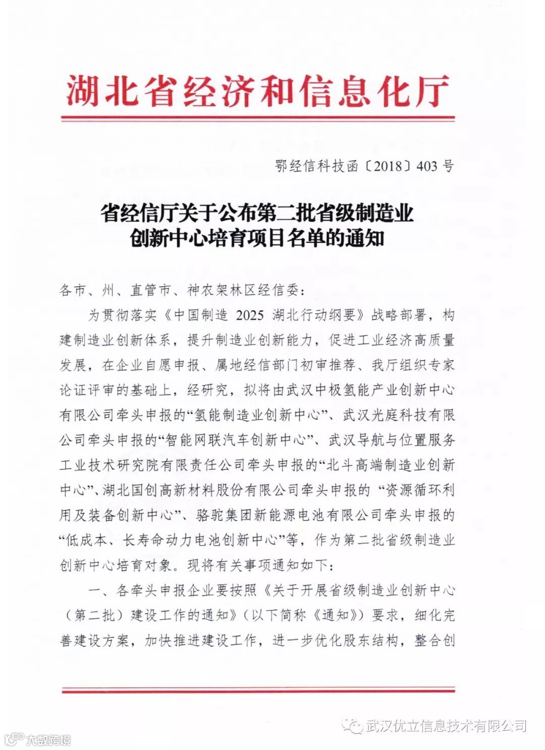 省经信厅关于公布第二批省级制造业创新中心培育项目名单的通知