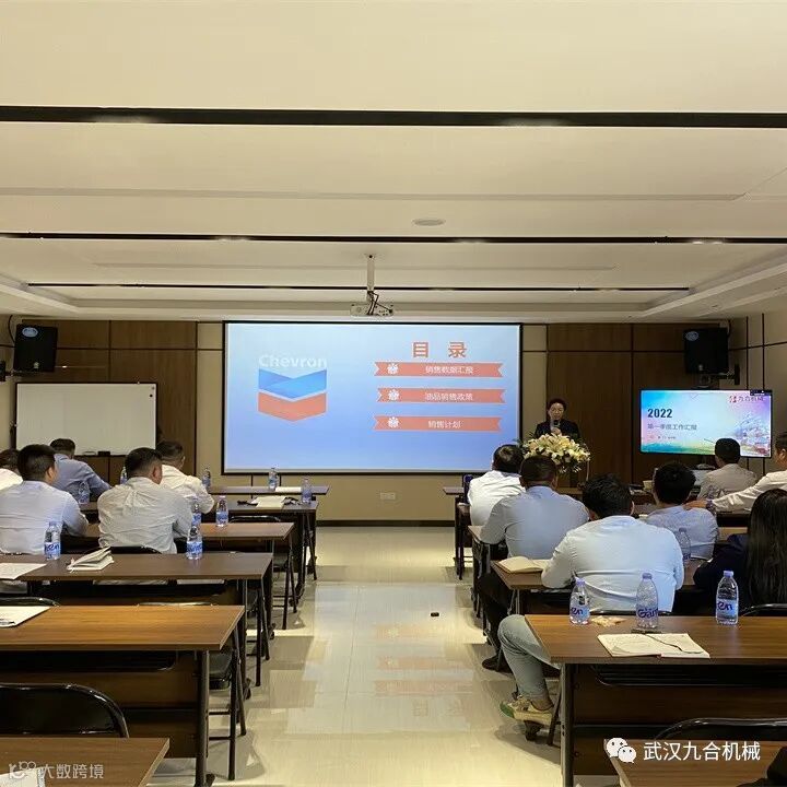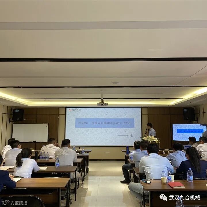 2022年4月8日,武汉九合机械集团在总部召开2022年第一季度销售会议。因疫情原因,本次会议采用线上线下同时进行的方式。