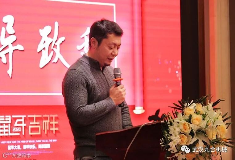 在这辞旧迎新的时候,在这灯光绚丽的舞台,我首先想说的还是感谢,感谢大家灿烂的笑脸,感谢大家友好地相聚,感谢武汉九合机械的每一位同事,谢谢大家!