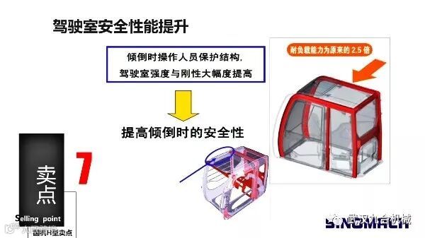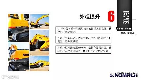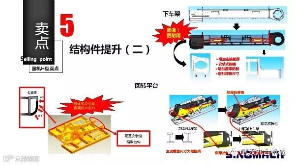 (5) 标配加强型工作装置,优化五大结构件的应力分布,整体强度及可靠性全面提升,标配加长加宽型底盘,优化箱形结构,工作稳定性好;
