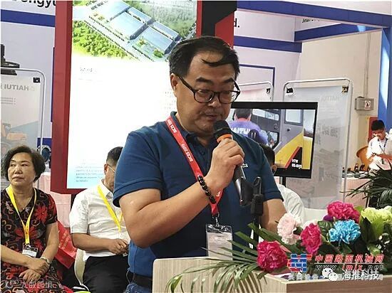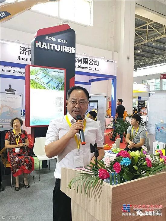 随后,中机科(北京)车辆检测工程研究院有限公司、国家工程机械质量监督检验中心副总工程师邸鹏远先生发表致辞,他表示,作为一家专业的工程机械检测机构,我公司与海推公司近年来合作密切,可以说见证了海推公司成立、发展,对于海推公司HTW系列轮式挖掘机的面世,我们充满了期待。