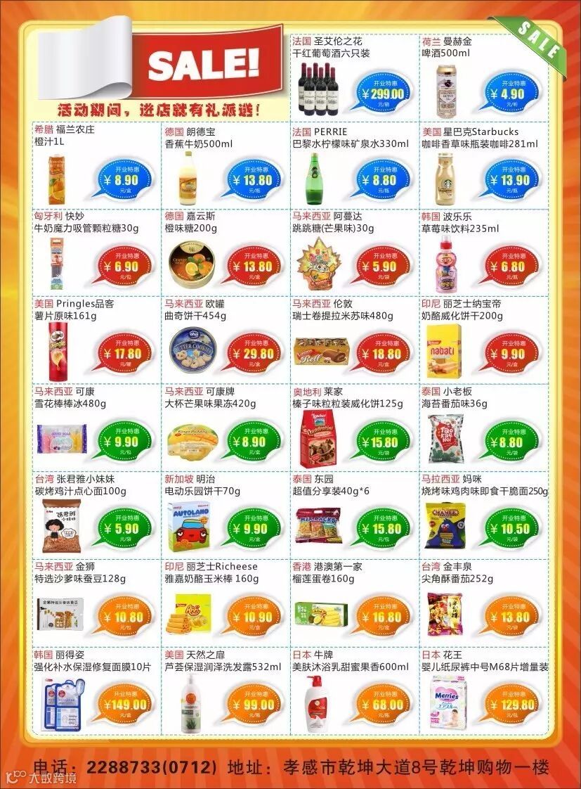 地址:湖北孝感市乾坤大道8号乾坤购物一楼