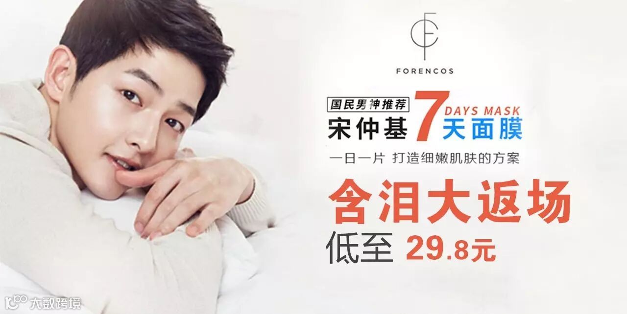 宋仲基七天面膜七片,周一到周日每天一款,每天都有不同功效~7片连续使用,你的皮肤不变好都不可能哦,仅需几周皮肤立马焕亮光彩