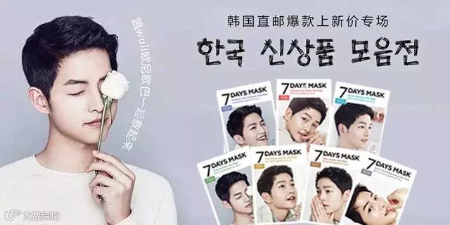 宋仲基七天面膜,周一到周日每天一款,每天都有不同功效~7片连续使用,你的皮肤不变好都不可能哦,仅需几周皮肤立马焕亮光彩