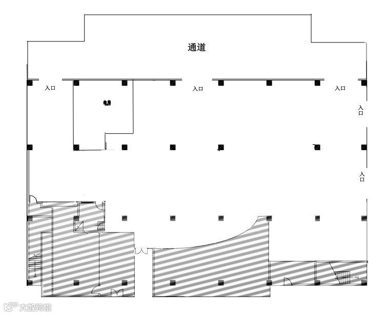 上图:东湖路25号首层,出租面积925㎡,不包含通道及阴影部分