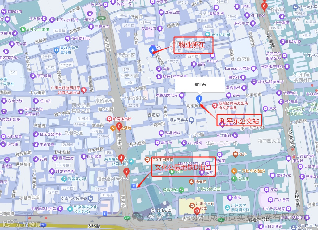 十三行服装批发市场贸易商圈,上下九广场,中国工商银行(广州十三支行)等。