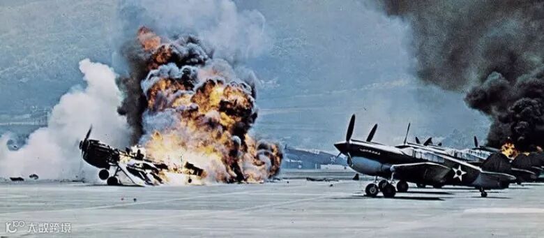 图 1:“虎虎虎”电影中,美国指挥官到达基地的时候,许多飞机已经在地面被日军炸毁