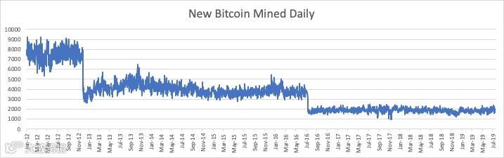 在第一次减半发生之前,比特币每天会有7500 - 8000 BTC的新币供应。而在第一次减半完成后,其日新增供应下降到3700-4000 BTC。而目前,比特币每天的新增供应大约为1900-2000 BTC。而在下次减半完成后,新增日供应会下降到1000 BTC 左右。