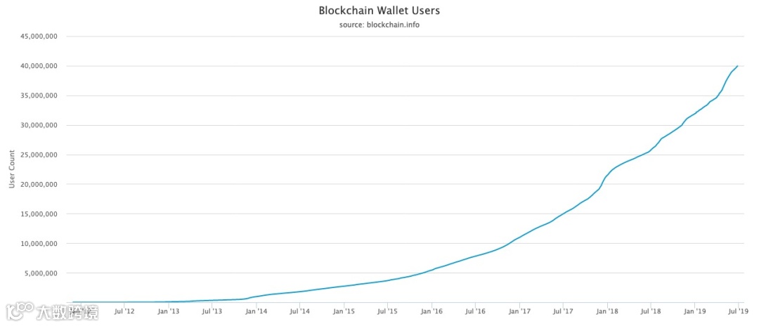 比特币的blockchain钱包用户数量以惊人的速度在增长,其目前超过了4000万,仅在2019年便增加了800万,可见,比特币网络正呈现出爆发式地增长。根据梅特卡夫定律,网络的值与其节点的平方成正比,又鉴于比特币的供应有限,比特币价格显然会随网络的增长而上涨。