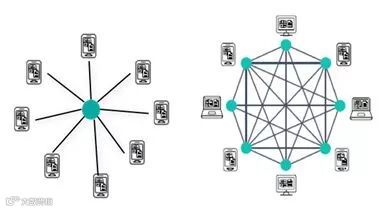 图1 从传统集中记账方式(左)到分布式总账(右)