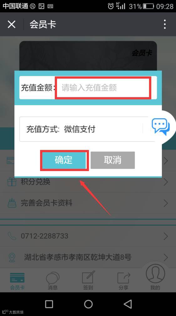 步骤五:填写充值金额,支付后确认