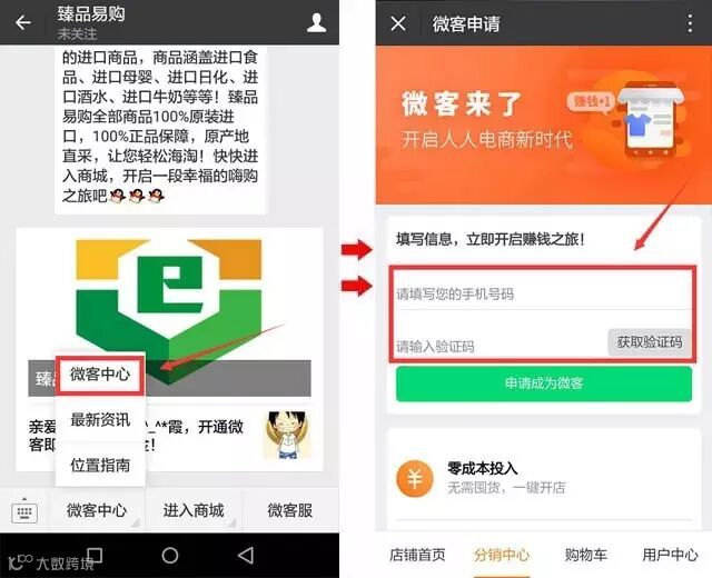 进入店铺内主动申请成为分销,还没关注的点击最上方蓝字关注后申请微客分销