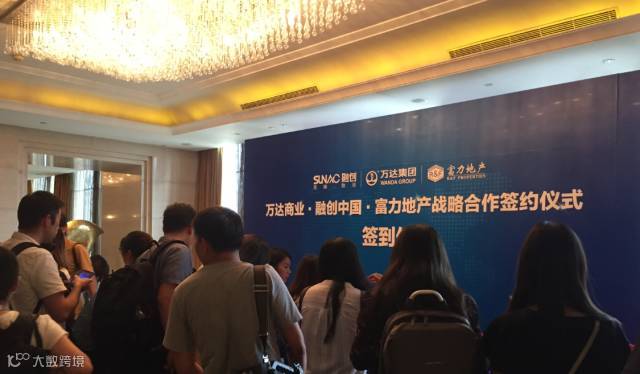 昨天下午媒体签到的时候,记者在发布会现场看到,背景板上除了万达商业,融创中国两家以外,意外地出现了富力地产的名字。