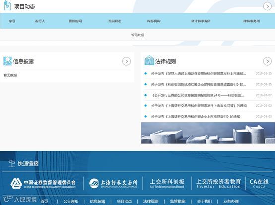 目前,上交所网站已可公开查询科创板企业申报信息,包括科创板有关公告通知、信息披露、项目动态等栏目,可实时浏览发行上市审核的最新信息。