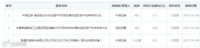 根据上海证券交易所债券项目申报系统公示消息,有两单PPP项目资产支持证券-ABS今日(3月8日)已被受理。