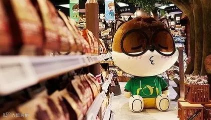 一个300平方米的零食店,不强调买卖的功能,强调体验和互动,入店内便还能听到二次元歌手洛天依的投食歌,森林主题内装,店内还有1/3的区域设置了休闲座椅和吧台,还放置了大树、木屋等充满森林气息的元素,陈列产品主打线上店铺常见的坚果、肉铺等产品。跟其他零食店不同的是,每一个系列的包装都有一个小松鼠的故事。