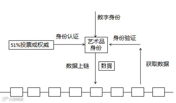 首先,艺术品需要一个数字身份,这个身份的认证有可能是通过51%的投票产生,也有可能是通过权威认证。然后在数据上链的时候,需要附加上身份信息。数据使用者获取到数据后,对身份信息进行验证,然后根据验证结果决定数据的可信度。