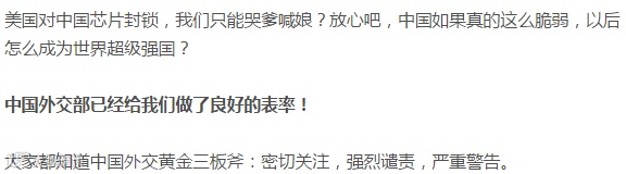 菲律宾挑衅中国南海的时候,我们嘴上谴责,海关检疫人家水果一个月。美国军舰放探测器的时候,我们嘴上谴责,但是每次都被勤劳的渔民捕捞起来了,回去卖废品。外交部说我们不会造航母,结果,第二艘都下水了……