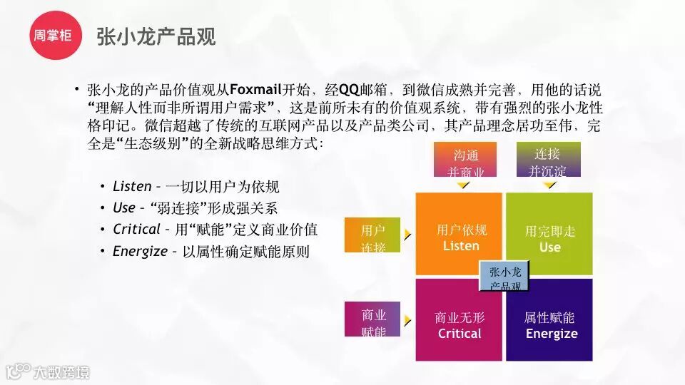 使命塑造——生态级领导者往往是使命驱动的,使命价值观驱动领导者获得高纬度思维方式,并推动战略有效性提升,张小龙在这一点是极其明显的。