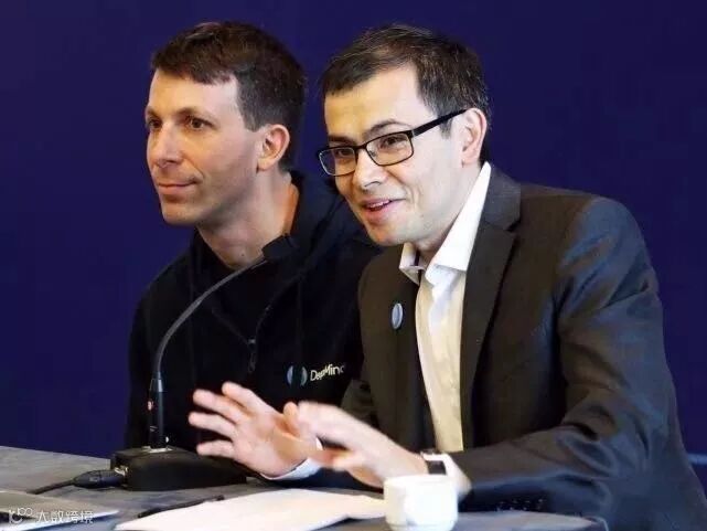 图为DeepMind AlphaGo项目首席研究员大卫·席尔瓦(David Silver,左)与首席执行官德米斯·哈比斯(Demis Hassabis)