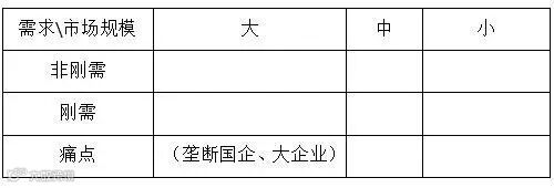 在这个市场上,痛点并不多。Uber、滴滴活生生地把非刚需变成刚需,这个过程是要烧钱的。为什么滴滴要烧钱,因为有的需求是非刚需的,他太小了。举个例子,需要私家车去接你,由于价格下不来,市场的容量是非常小的。加之信息、信用不对称,容量就更小了,于是只有通过砸钱来把市场变大,再砸钱把需求变成刚需或者痛点。把市场规模分为大、中、小。