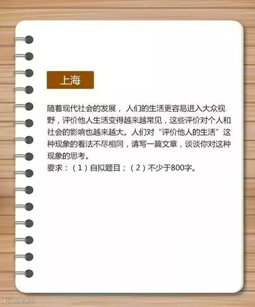 2016高考上海语文作文题:随着现代社会的发展,人们的生活更容易进入大众视野,评价他人生活变得越来越常见,这些评价对个人和社会的影响也越来越大。人们对“评价他人的生活”这种现象的看法不尽相同,请写一篇文章,谈谈你对这种现象的思考。要求:(1)自拟题目;(2)不少于800字。