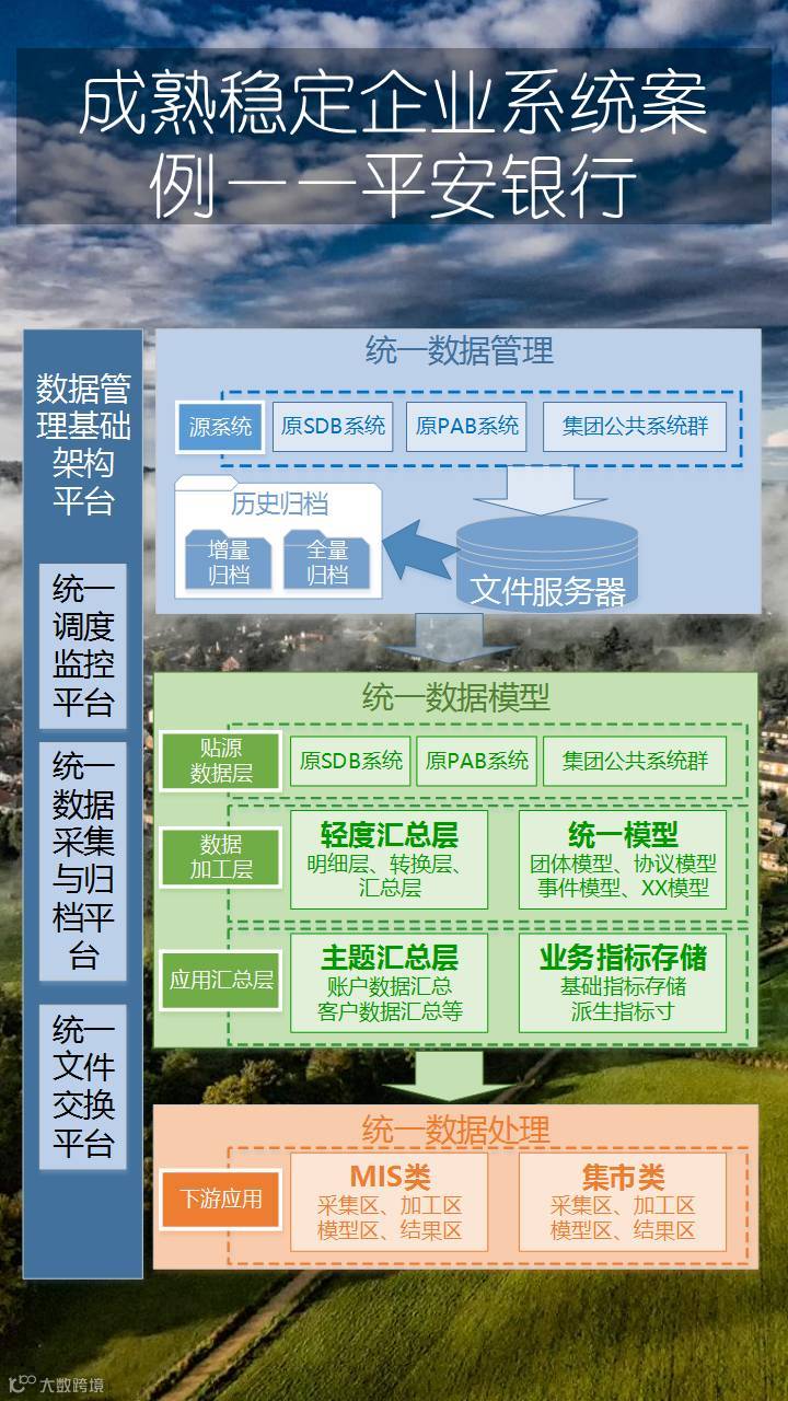 这张图是平安银行大数据管理项目,左边是基础平台,右边是应用整合。在这里稍微展开一下这六个平台的业务功能: