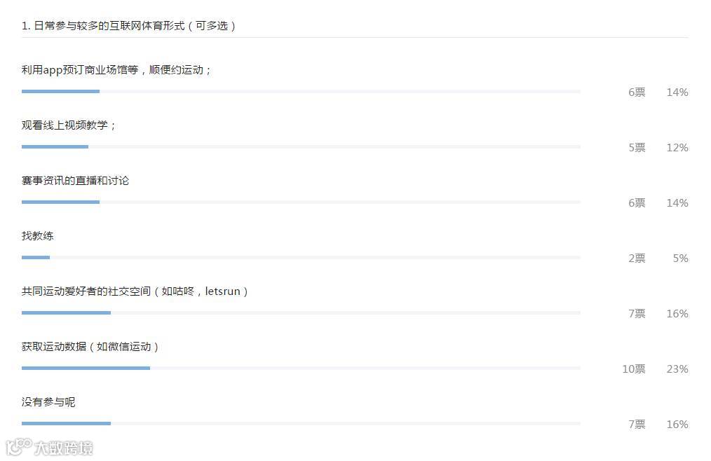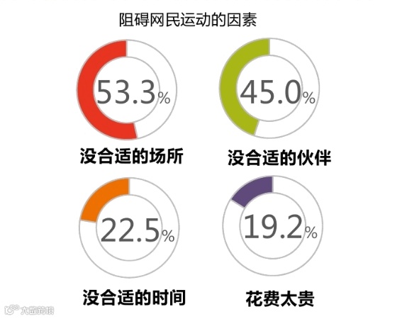 小助手:上面图中,可以看到,没有合适的场所和何所的伙伴是大众没有参与运动的主要因素。所以,“互联网”作为一种连接工具,未来在融合发展的同时如何使线上线下互动,避免线上场景火爆,线下活动萧条。有哪些办法能够促使闭环的形成呢?
