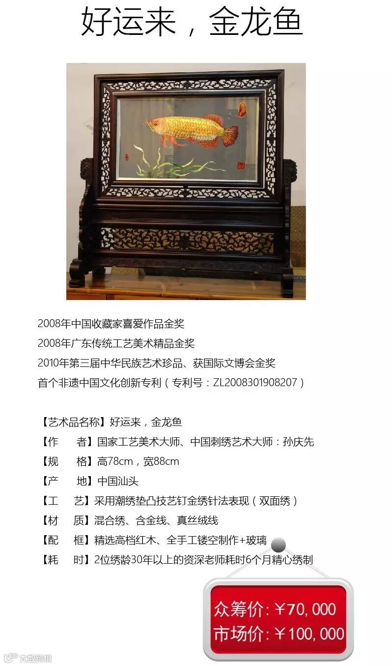 为了继承发展潮绣工业 、生产和销售潮绣服饰 、生产和销售潮绣工艺品。拥有一支专业团队,实行产、学、研同步发展,高新技术与潮绣文化资源相结合,使圣地亚的潮绣产品拥有在业内无法比拟的竞争优势,也为超值利润回报奠定坚实的基础。特此圣地亚推出众筹方案: