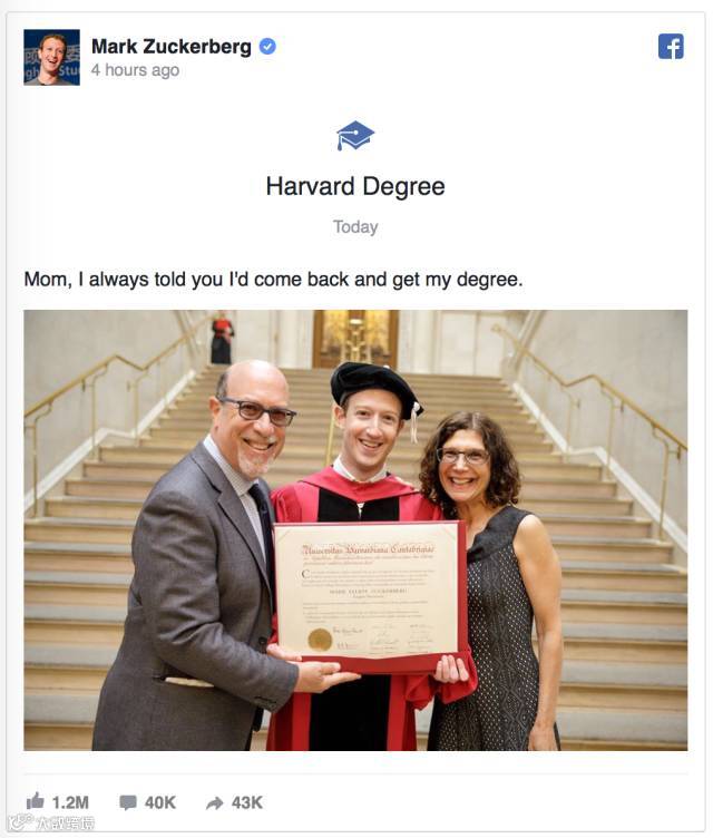 他的母亲表示小扎一定会辍学(真是知子莫若母啊……), 妹妹曾经表示自己会比哥哥更早毕业,扎克伯格自己则表示他一定会拿到学位证书。现在看来,小扎一家简直都是666的神算子。