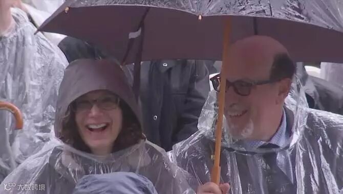 “我的太太普莉希拉陈是我在哈佛最美好的回忆。而她也是我一生中最重要的人,无可取代。”他手捂心口看向穿着雨衣坐在台下的太太。