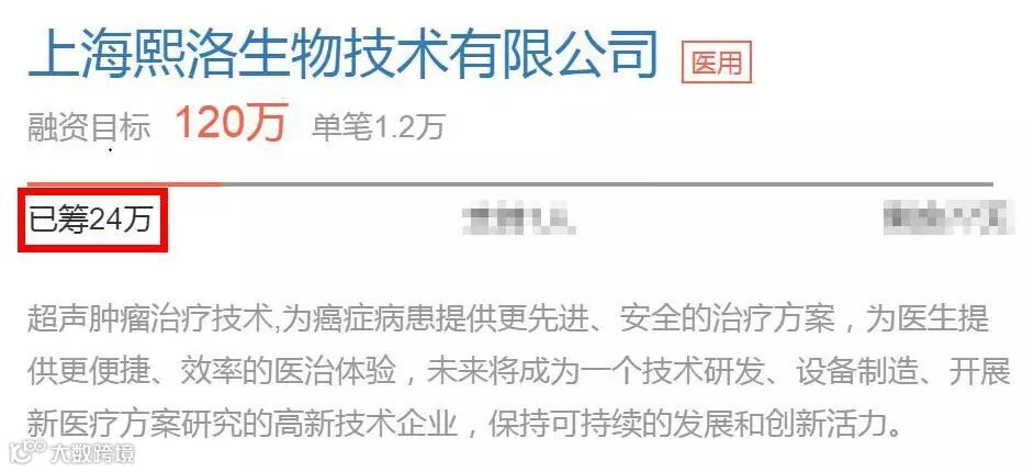 上海熙洛生物技术有限公司旗下的全球首创肿瘤超声设备项目自2015年12月31日上线以来,一路高歌,创同筹荟多项众筹记录,上线时间最短,众筹金额最多,首次微信路演募集金额1,224,000元,超过目标融资金额。众多投资家争相抛出橄榄枝,对于优质又卖座的项目,同筹荟从来都是“越多越好越精彩”,虽然已经超募,同筹荟仍然以投资人的利益为首要职责,全球首创肿瘤超声治疗仪项目,截止到2016年4月1日,同筹君是很负责任的人哦!下面就让我来介绍肿瘤超声治疗仪项目超募的全过程吧!