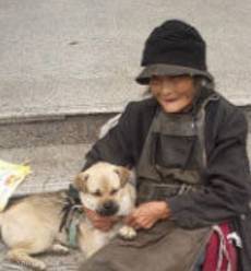 一位80多岁的婆婆,带一只狗狗,安静的坐在路边,帮小狗梳毛,乞讨瓷杯里有几元钱,见有人路过,就露出一个慈祥的微笑。婆婆耳聪目明,最小的孩子也40多了。她被孩子撵了出来,就睡在医院的角落。只有婆婆从小养大的小狗一直不离不弃的跟着她。有时候重感情的未必是人。