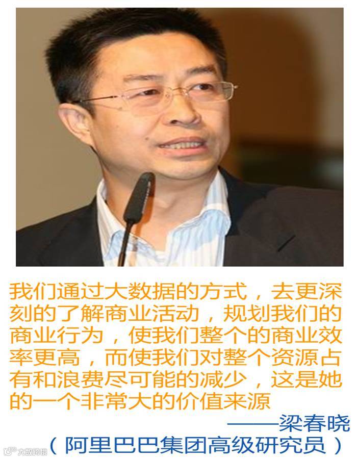 阿里为什么要做这件事情,根据阿里集团高级研究员梁春晓的解释:我们通过大数据的方式,去更深刻的了解商业活动,规划我们的商业行为,使我们整个的商业效率更高,而使我们对整个资源占有和浪费尽可能的减少,这是她的一个非常大的价值来源。