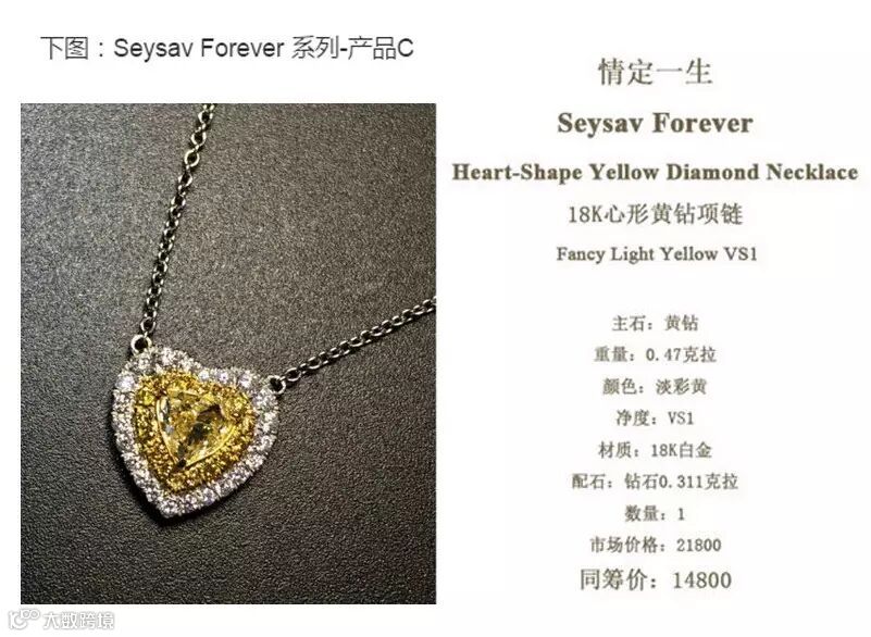 Seysav Forever 系列-产品C。市场价:21800、众筹价:14800。;主石:0.47克拉、颜色:淡彩黄、净度:VS1、材质18K白金、配石:0.311克拉。【额外回报:奢尚终身会员享有9折优惠, 产品售后及服务。】